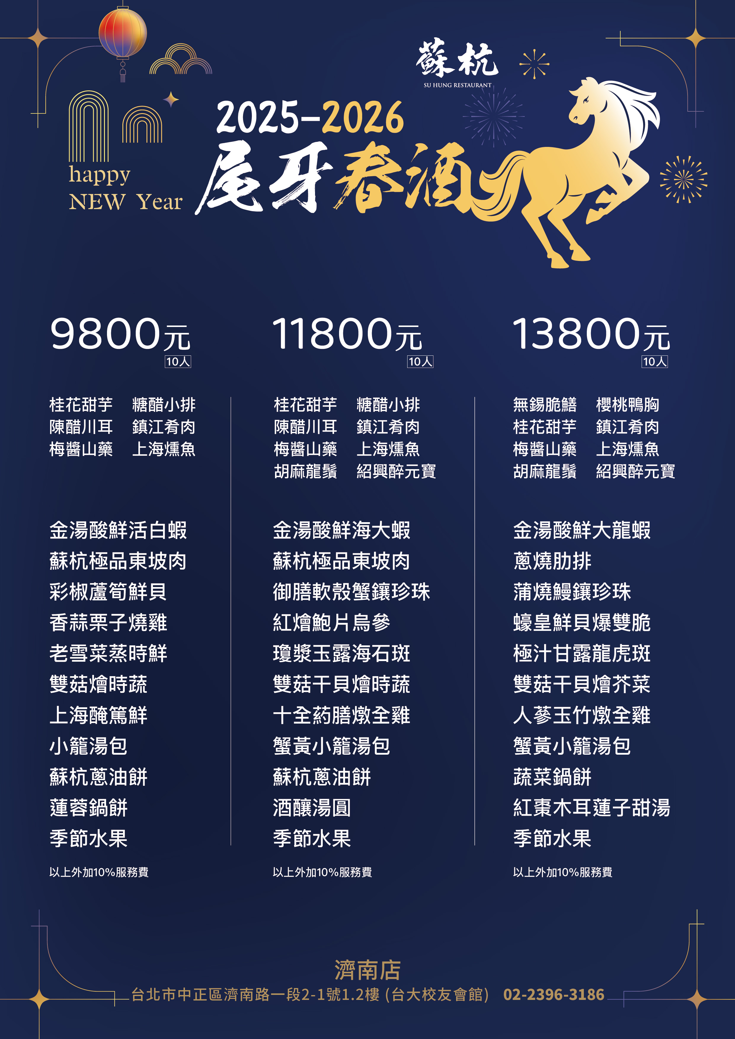 菜色介紹Dishes presentation Point Home > 蘇杭 > 菜色介紹 預定菜色 尾牙春酒 除夕團圓/年菜外賣 宴席菜單 冷盤 肉品 海鮮 蔬菜豆腐 點心 飯麵 湯羹 風華合菜 濟南店 9800/11800/13800 回上一頁 上一則 下一則