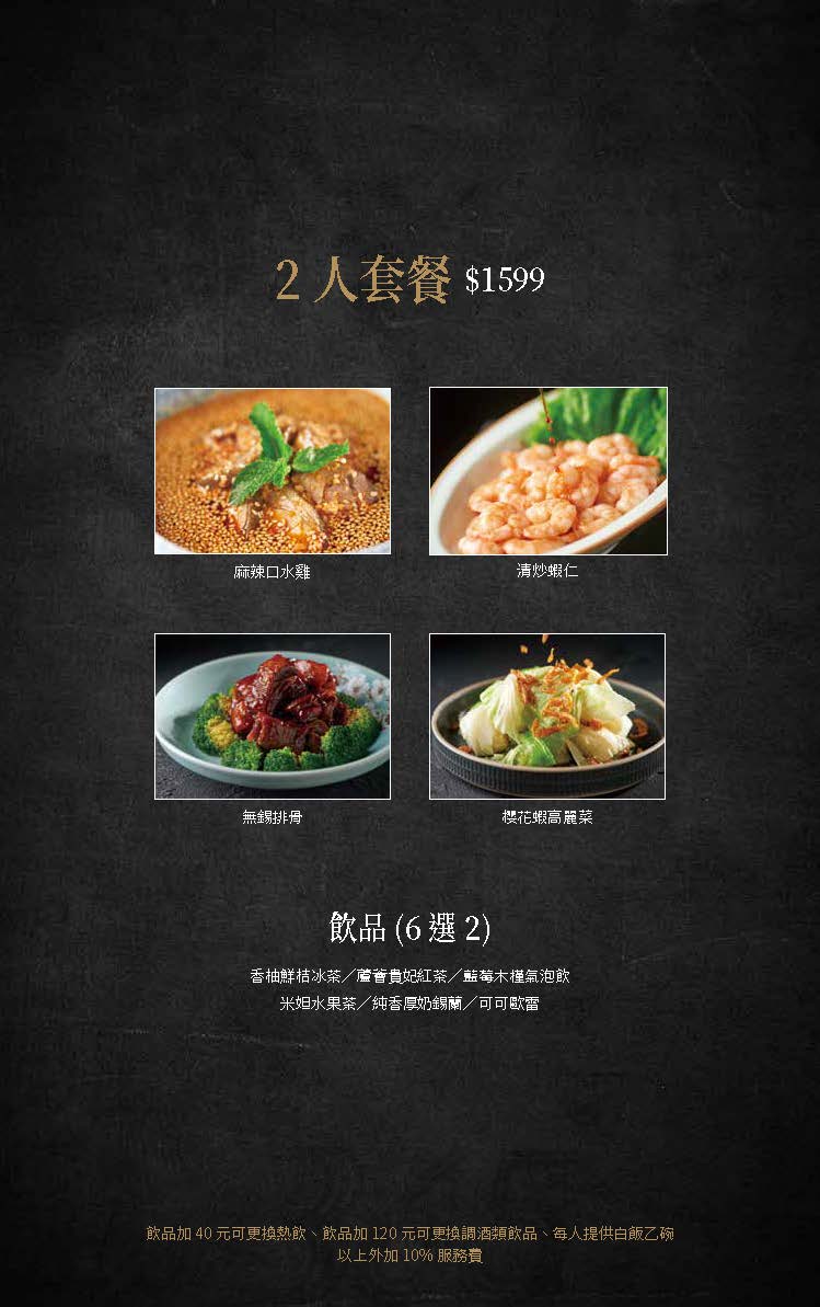 菜色介紹Dishes presentation Point Home > 蘇杭365 > 菜色介紹 母親節菜單 組合套餐 宴席菜單 風味冷盤 海珍河鮮 精饡肉品 時蔬豆腐 飽食麵飯 品饡鮮湯 上海點心 創意飲品 微醺調酒 2人套餐 NT$1599 回上一頁 下一則