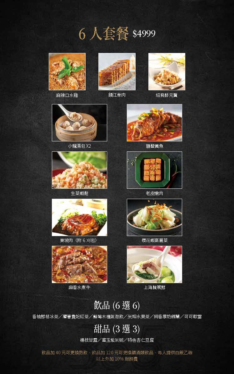 菜色介紹Dishes presentation Point Home > 蘇杭365 > 菜色介紹 母親節菜單 組合套餐 宴席菜單 風味冷盤 海珍河鮮 精饡肉品 時蔬豆腐 飽食麵飯 品饡鮮湯 上海點心 創意飲品 微醺調酒 6人套餐 NT$4999 回上一頁 上一則